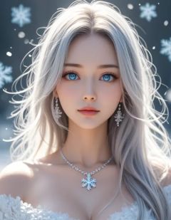 zPDXL3, safe_pos, score_9, score_8_up, source_realistic, source_anime,8k, best quality, ultra high res, sharp focus,masterpiece, expressive, digital art, cinematic,intricate details, extremely detailed, Unreal Engine,cinematic light, photo studio lighting,dramatic angle, dynamic camera angle, unique perspective, unique angle, wide angle, dutch angle, foreshortening,1girl, solo, closed mouth, face_focus, looking at viewer,silver hair, long hair,big eyes, beautiful detailed eyes, detailed beautiful delicate face,hanfu, off shoulder, hair_ornament, necklace,snowflake, (surrounded by heavy floating snowflake flow:1.2),dynamic angle, glowing skin, the most beautiful form of chaos, elegant, vivid colors, romanticism, depth of field,simple background, mandala, entangle, official art,blurred eyes, innocent, lovely face,big eyes, beautiful detailed eyes, very detailed eyes, detailed beautiful delicate face,realistic humid skin, detailed skin,sexy pose, sensual posture, graceful pose, curvy, scenery,blurry background