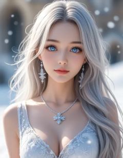 zPDXL3, safe_pos, score_9, score_8_up, source_realistic, source_anime,8k, best quality, ultra high res, sharp focus,masterpiece, expressive, digital art, cinematic,intricate details, extremely detailed, Unreal Engine,cinematic light, photo studio lighting,dramatic angle, dynamic camera angle, unique perspective, unique angle, wide angle, dutch angle, foreshortening,1girl, solo, closed mouth, face_focus, looking at viewer,silver hair, long hair,big eyes, beautiful detailed eyes, detailed beautiful delicate face,hanfu, off shoulder, hair_ornament, necklace,snowflake, (surrounded by heavy floating snowflake flow:1.2),dynamic angle, glowing skin, the most beautiful form of chaos, elegant, vivid colors, romanticism, depth of field,simple background, mandala, entangle, official art,blurred eyes, innocent, lovely face,big eyes, beautiful detailed eyes, very detailed eyes, detailed beautiful delicate face,realistic humid skin, detailed skin,sexy pose, sensual posture, graceful pose, curvy, scenery,blurry background