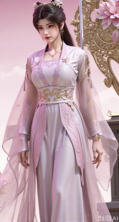 (masterpiece, best quality:1.2),1girl, navel, solo, midriff, bare shoulders, hair ornament,(long hair),(High double ponytail:1.49), red lips, BREAK, (looking at viewer:1.39), chinese clothes,(Holographic pink dress:1.36), (lace,Rainbow Gradient Color:1.28), BREAK,blurry, solo focus, long hair, lips, daytime, lipstick, outdoors, standing,upper body,(huge breasts:2.89), background, solo, makeup,(Stockings, high heels:1.29),(huge breasts:2.99),(full breasts:2.99),,(Background with lotus pond and pink lotus flowers:1.39),,Xbaozhiyinhuaqun,Xlonger,Xxiaoli,Xtangheziqun,Xyunyunshouban,XgangshouCOS,Xgangshou,XQueenMedusa,XyunxiaoYH3,XmengkeerX3,XMkeerX3