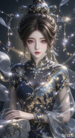 This painting depicts a quiet and elegant scene, in which a young woman is wearing a cheongsam. Her head rested on the stone. Her costume design is complex, featuring exquisite embroidery and light and elegant black fabrics. Her hair is combed into a delicate ball head, and gorgeous Hairpin is used to increase the overall elegance and exquisiteness. The background is soft and fuzzy, and the dreamy black background enhances the quiet atmosphere of the scene, with bright and clearly visible portraits.There is only one Hairpin.