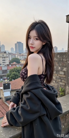 a asian woman, sexy long hair, charming and seductive temperament, distant close-up, golden ratio, movie texture, minimalism, high-end feeling, strong contrast between cold and warm, outdoor scenes,beauty