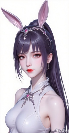 xiaowu,animal ears,rabbit ears,hair ornament,ponytail,long hair,black hair,closed mouth,bangs