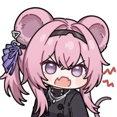 <lora:haqi_angry_fang:0.7>,lin \(arknights\),arknights,animal ears,long hair,mouse ears,,hairband,pink hair,purple eyes,black hairband,mouse girl,pink eyes,mouse tail,tail,chibi,1girl,solo,upper body,haqi,angry,fang,v-shaped eyebrows,looking at viewer,open mouth,white background,simple background,<lora:doro_head_noob-4:1>,doro,