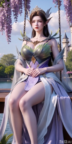 (masterpiece, top quality, best quality, official art, beautiful and aesthetic:1.2),Dynamic posture,(Sitting on the swing:1.39),natural skin texture,(Milky skin:1.2),1gir,solo,long Dress, (Long legs, perfect proportions:1.2),(Sakura, butterfly:1.29),(huge breasts:2.99),(full breasts:2.99),Wisteria, wisteria flowers, castle, waterfall, mountains in the distance,,XyunxiaoYH3,Xfenlanzhanguopao,XbaifengsongyuYH,Xbigbreasts,XLiquidGlass,XnanxiaochengYH,Xmiaozufushi,Xkejinnudi,Xbiji