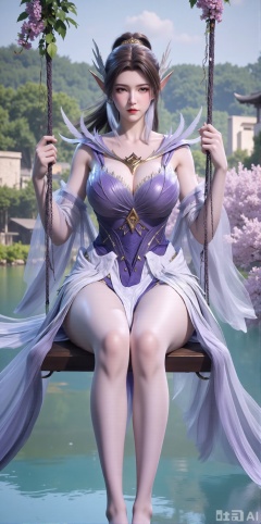 (masterpiece, top quality, best quality, official art, beautiful and aesthetic:1.2),Dynamic posture,(Sitting on the swing:1.39),natural skin texture,(Milky skin:1.2),1gir,solo,long Dress, (Long legs, perfect proportions:1.2),(Sakura, butterfly:1.29),(huge breasts:2.99),(full breasts:2.99),Wisteria, wisteria flowers, castle, waterfall, mountains in the distance,,XyunxiaoYH3,Xfenlanzhanguopao,XbaifengsongyuYH,Xbigbreasts,XLiquidGlass,XnanxiaochengYH,Xmiaozufushi,Xkejinnudi,Xbiji