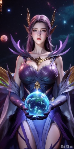 (masterpiece, best quality:1.2),Realistic details, ultra-clear, wallpaper, 8k, masterpiece, masterpiece, best quality, high quality, flowing long hair, exquisite hair accessories, headdresses, cyberpunk electronic luminous clothing, full body multi-luminous line light strips, cyberpunk luminous lines colorful. The sacred light, the cosmic space background, the planets of different colors around, the nebula flows, the stars twinkle, the golden willow branches stretch, holding an earth with both hands, the details of the earth's surface, the texture of mountains, rivers and oceans, the surrounding planets, planets of all sizes, traces of planets orbits, dreamy light and shadow effects.,(huge breasts:2.99),(full breasts:2.99),,XyunxiaoYH3,Xfenlanzhanguopao,XbaifengsongyuYH,Xbigbreasts,XLiquidGlass,XnanxiaochengYH,Xmiaozufushi,Xkejinnudi,Xbiji
