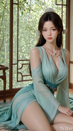 1woman, solo, ornament, breasts, SY clothes, yokozuwari, Glossy exquisite skin, even illumination, looking at viewer, very awa, Solid artistic background,