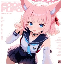ultra detailed anime texture,O,Yazawa Nico(blue archive),Yazawa Nico(blue archive),1girl, animal ears, solo, blue eyes, halo, pink hair, v, detached sleeves, white background, simple background, looking at viewer, fox ears, smile, short hair, animal ear fluff, ribbon, open mouth, collarbone, blush, bangs, sailor collar, skirt, hair ribbon, buttons, choker, medium hair,(aesthetics ),masterpiece,best quality,ultra high definition,32K resolution,clear focus,delicate details,high-end texture,fashion photography,film perspective,rich colors,color palette,advertising style,tension composition,masterpiece,mild atmosphere,latest,dynamic Dutch perspective,transparent composition,magazine cover,cover,