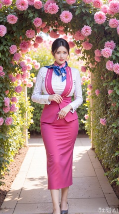 (masterpiece,best quality:1.23),stewardess, elegant pose, perfect S-shaped body, China Southern Airlines uniform, standing under a blooming archway, rose garden, sharp details, warm natural light,(huge breasts, full breasts:2.99),,Xaili2,XyunxiaoYH5,XlinziyueXZ,XtuliH,Xbigbreasts,XMedusaQueen,Xnanhangzhifu,Xjkgeziqun,Xbingbing