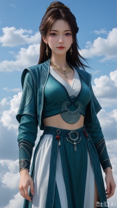 1girl, solo, MPL clothes, on cloud, cowboy_shot, looking at viewer, exquisite skin, Surrounded clouds background, high definition, Best quality, masterpiece, 4K,