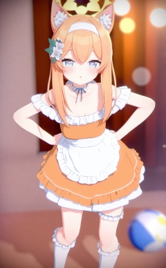 masterpiece,absurdres,best quality,loli,petite,high quality,chromatic_aberration,//,1girl,mari_\(blue_archive\),animal_ears,solo,yellow_halo,halo,blue_eyes,orange_hair,white_socks,alternate_costume,hair_ornament,orange_dress,socks,hair_flower,flower,looking_at_viewer,dress,kneehighs,animal_ear_fluff,breasts,long_hair,bridal_garter,blurry,blush,standing,fox_ears,ball,apron,hairband,frills,blurry_background,white_hairband,white_flower,hands_on_own_hips,small_breasts,headband,mari_\(track\)_\(blue_archive\),parted_lips,collarbone,sidelocks,choker,indoors,bare_shoulders,shoes,cat_ears,full_body,strap_slip,heart-shaped_pupils,heart,fox_girl,yellow_dress,leaning_forward,frilled_socks,feet_out_of_frame,frilled_dress,frilled_choker,contrapposto,short_dress,//,Depth of field,(colorful),hdr,Tyndall effect,depth of field,Tyndall Effect,blurry,blurry_background,depth_of_field,bokeh,glowing,//,<lora:MMDguangwuran2——【noob】hans:1>,