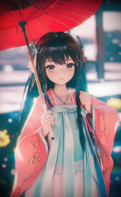 masterpiece,absurdres,best quality,loli,petite,high quality,chromatic_aberration,//,1girl,solo,umbrella,black hair,snow,hanfu,oil-paper umbrella,flower,hair ornament,chinese clothes,snowing,jewelry,brown eyes,nail polish,necklace,holding,outdoors,parasol,hair flower,long hair,//,Depth of field,(colorful),hdr,Tyndall effect,depth of field,Tyndall Effect,blurry,blurry_background,depth_of_field,bokeh,glowing,//,<lora:MMDguangwuran2——【noob】hans:1>,<lora:MMDguangwuran——【noob】hans:0.15>,