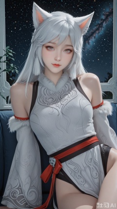 1girl, solo, YY2 clothes, exquisite skin, cowboy_shot, reclining, looking at viewer, even illumination, very awa, starry sky background,