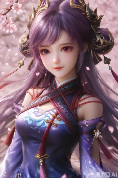 masterpiece, best quality, masterpiece,best quality,official art,extremely detailed CG unity 8k wallpaper, ,1girl,solo,looking at viewer,long hair,purple hair,hair ornament,dress,detached sleeves,lips,Cherry Blossoms,petals,pink background,pink theme,(facing viewer:1.3),(happiness:1.2),happiness,happiness,chinese clothes,pov,