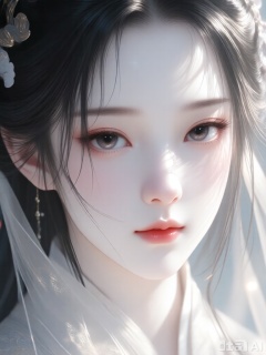 solo,1girl, 3D国风,插画风格,古风,少女肖像,皮肤白皙通透,眼神深邃沉静,盯着镜头,特写,电影感,极致细节,丰富光线,超细腻线条,古风形象,大师级构图,神秘诡异氛围,梦幻,人像摄影,光影动态,高分辨率,自然光线,柔和色调,超清细节
