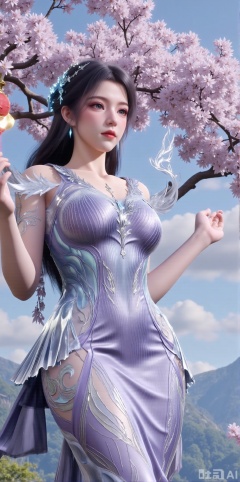 (masterpiece, best quality:1.2),1 girl, solo, long hair, black hair, hair accessories, clothing, cleavage cuts, long dress, jewelry, upper body, earrings. Background is outdoor, sky, clouds, water, trees, architecture, landscape, lantern, mountain, dragon, architecture, bridge, east Asian architecture, fog, pagoda, wisteria,(huge breasts:2.99),(full breasts:2.99),XyunxiaoYH3,,XbaifengsongyuYH,Xbigbreasts,Xxuenvxuedi,XyanqingfeiX,Xloubeidress,Xziteng