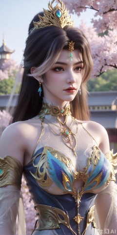 (masterpiece, best quality:1.2),1 girl, solo, long hair, black hair, hair accessories, clothing, cleavage cuts, long dress, jewelry, upper body, earrings. Background is outdoor, sky, clouds, water, trees, architecture, landscape, lantern, mountain, dragon, architecture, bridge, east Asian architecture, fog, pagoda, wisteria,(huge breasts:2.99),(full breasts:2.99),XyunxiaoYH3,,XbaifengsongyuYH,Xbigbreasts,Xxuenvxuedi,XyanqingfeiX,Xloubeidress,Xziteng
