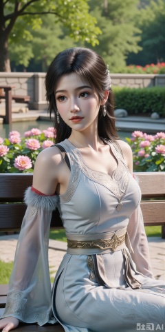 (masterpiece, best quality:1.2),A beauty ,(dress). Leaning on a garden bench filled with macaron - colored flowers,.Sunlight filters through the leaves onto her face, creating a lazy and gentle atmosphere, and her skirt sways softly in the breeze. 8K resolution, detailed texture of knitted fabric, lustrous pearl texture, vivid flower colors, soft natural light, Instagram - style filter texture.,(huge breasts:2.99),(full breasts:2.99),,XyunxiaoYH3,,XbaifengsongyuYH,Xbigbreasts,Xxuenvxuedi,XyanqingfeiX,Xloubeidress,XyinyueX3