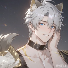 xiao zhi tiao,(artist:mazjojo:0.77),(artist:pigeon666:0.70),(artist:zawar379:0.83),(artist:remsrar:0.65),(artist:chimmyming:0.72),masterpiece,best quality,male focus,hd,4kamazing quality,very aesthetic,bust,high resolution,ultra-detailed,perfect lighting,volumetric lighting,(dark lighting),shadowing,(good shadowing),cinematic lighting,cinematic,shading,shallow,absurdres,newest,scenery,depth of field,1boy,1male,(((solo))),looking at viewer,Silver dog tag masterpiece,((dog ears, dog tail)),((smile, happy, laugh)),