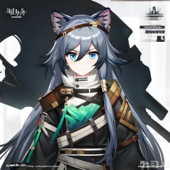 looking at viewer,,fu_hua,game_cg_style,arknights_style,logo,pose,official alternate costume,character name,chinese text,copyright name,