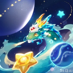 yellow eyes, horns, star \(symbol\), cup, no humans, star \(sky\), smoke, dragon horns, dragon, scales, space, planet, eastern dragon, breathing fire,Chibi Spirit