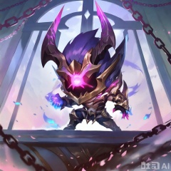 1boy, weapon, male focus, horns, armor, window, glowing, chain, glowing eyes,Chibi Spirit