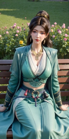 (masterpiece, best quality:1.2),A beauty ,(dress). Leaning on a garden bench filled with macaron - colored flowers,.Sunlight filters through the leaves onto her face, creating a lazy and gentle atmosphere, and her skirt sways softly in the breeze. 8K resolution, detailed texture of knitted fabric, lustrous pearl texture, vivid flower colors, soft natural light, Instagram - style filter texture.,(huge breasts:2.99),(full breasts:2.99),,XyunxiaoYH3,,XbaifengsongyuYH,Xbigbreasts,Xxuenvxuedi,XyanqingfeiX,Xloubeidress,XyinyueX3