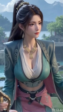 (masterpiece, best quality:1.2),1 girl, solo, long hair, black hair, hair accessories, clothing, cleavage cuts, long dress, jewelry, upper body, earrings. Background is outdoor, sky, clouds, water, trees, architecture, landscape, lantern, mountain, dragon, architecture, bridge, east Asian architecture, fog, pagoda,,(huge breasts:2.99),(full breasts:2.99),,,Xaili2,XyunxiaoYH5,XlinziyueXZ,XtuliH,Xbigbreasts,XMedusaQueen,Xnanhangzhifu,Xjkgeziqun,Xbingbing,XmupeulingHY3,XhanliYY
