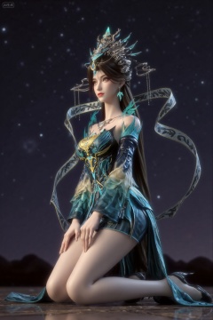 Digital CGI artwork of a slender,fair-skinned woman with long brown hair,wearing an ornate,flowing blue and gold dress with intricate patterns,and a matching headpiece. The character is kneeling on one knee, with one hand resting on the knee and the other placed on the ground. The overall aesthetic is elegant and otherworldly, suggesting a character of significant importance or a role in a fantastical narrative.The background is a starry night sky, enhancing the mystical and ethereal atmosphere of the scene, masterpiece,best quality,astonishing quality,ultimate aesthetics,absurd,best quality,ultimate aesthetics,masterpiece,emotional masterpiece,extraordinary above all,mastery of details,, Negative prompt: ng_deepnegative_v1_75t,(badhandv4:1.2),EasyNegative,(worst quality:2),,nsfw, Steps: 30, Sampler: DPM++ 2M, CFG scale: 3.5, Seed: 2201250726, Size: 1024x1536, Model hash: 062dad72b2, Model: 麦橘超然majicFlus_v1.safetensors, Denoising strength: 0, RNG: CPU, Lora 1: 20250818-1755535685144-0013, Lora Hash 1: 68527fd6dd, Lora Weight 1: 1.0, vae_name: automatic