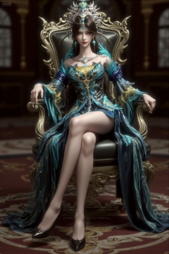 Digital CGI artwork of a slender,fair-skinned woman with long brown hair,wearing an ornate,flowing blue and gold dress with intricate patterns,and a matching headpiece. She sits on a luxurious golden throne,her legs crossed at the ankles and one leg hanging down. Her left arm rests on the armrest,while her right hand gently holds her chin. Her posture is elegant and poised,exuding confidence and grace. The scene is illuminated by dramatic lighting that highlights the gold accents of her attire and the intricate details of the throne. Soft shadows enhance the textures of the fabric and the surrounding ornate room,creating a luxurious and mystical atmosphere.,, masterpiece,best quality,astonishing quality,ultimate aesthetics,absurd,best quality,ultimate aesthetics,masterpiece,emotional masterpiece,extraordinary above all,mastery of details,, Negative prompt: ng_deepnegative_v1_75t,(badhandv4:1.2),EasyNegative,(worst quality:2),,nsfw, Steps: 30, Sampler: DPM++ 2M, CFG scale: 3.5, Seed: 3997163814, Size: 1024x1536, Model hash: 062dad72b2, Model: 麦橘超然majicFlus_v1.safetensors, Denoising strength: 0, RNG: CPU, Lora 1: 20250818-1755535685144-0013, Lora Hash 1: 68527fd6dd, Lora Weight 1: 1.0, vae_name: automatic