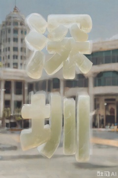 汉字"深圳",Flower characters,背景是深圳地方特色建筑,玉质汉字