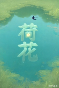 汉字"荷花",Flower characters,,玉质汉字,背景是csgf style,dczytt style,Traditional_Chinese_Colors,csgf style,mfmh style,Fairy tale illustration,looking down from mid-air,the shadow of the cloud is reflected on the grass,two glowing little swallows are flying,top view,Nordic illustration,Bird's-eye view from above,the lake water is crystal clear,the moss at the bottom of the lake is green,there are a few small orange fish,and the lake surface is dotted with ripples by the water,giving people a very quiet feeling.,