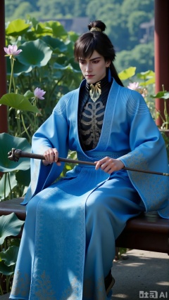 (masterpiece,best quality:1.23),ancient Chinese youth, tall and slender, hanfu, playing a guqin, sitting in a traditional pavilion, koi pond, blooming lotus flowers, soft lighting, high resolution,,,,XyunxiaoYH5,,Xbigbreasts,XMedusaQueen,Xzitenghua,Xxunyicaohua,Xhuayunfei,Xxiaochaxuangu,Xxuanguxiaocha,Xxuedixuenu,Xyunwangshuchengzhu