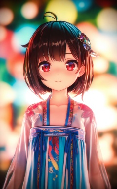 masterpiece,absurdres,best quality,loli,petite,high quality,chromatic_aberration,//,1girl, solo, red eyes, short hair, looking at viewer, hanfu, see-through, upper body, ahoge, brown hair, chinese clothes, smile, hair ornament, ribbon, blurry, closed mouth, depth of field, blue ribbon, black hair, collarbone//,Depth of field,(colorful),hdr,Tyndall effect,depth of field,Tyndall Effect,blurry,blurry_background,depth_of_field,bokeh,glowing,//,<lora:MMDguangwuran5——【noob】hans:1.1>,
