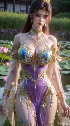 (masterpiece, best quality:1.2),1girl, navel, solo, midriff, bare shoulders, hair ornament,(long hair),(High double ponytail:1.49), red lips, BREAK, (looking at viewer:1.39), chinese clothes,(Holographic long dress:1.36), (lace,Rainbow Gradient Color:1.28), BREAK,blurry, solo focus, long hair, lips, daytime, lipstick, outdoors, standing,upper body,(huge breasts:2.89), background, solo, makeup,(Liquid glass style flowers:1.49),(huge breasts:2.99),(full breasts:2.99),,(Background with lotus pond and pink lotus flowers:1.39),XXaili2,XyunxiaoYH5,XlinziyueXZ,XtuliH,Xbigbreasts,XMedusaQueen,Xmiaozushaonv,Xkejinnvdi,Xbijinvshen,Xxihechengzhu,Xyunwangshuchengzhu,Xxuedixuenu,Xxuenvxuedi