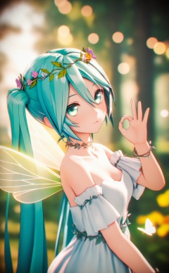 masterpiece,absurdres,best quality,loli,petite,high quality,chromatic_aberration,//,1girl,hatsune_miku,solo,wings,bug,long_hair,blurry,butterfly,twintails,blurry_background,dress,very_long_hair,breasts,fairy_wings,jewelry,depth_of_field,cleavage,aqua_hair,looking_at_viewer,insect_wings,butterfly_wings,nature,hair_between_eyes,strapless_dress,upper_body,bare_shoulders,fairy,flower,white_dress,bracelet,butterfly_on_hand,open_mouth,head_wreath,green_eyes,strapless,forest,detached_sleeves,aqua_eyes,transparent_wings,medium_breasts,outdoors,necklace,short_sleeves,ok_sign,collarbone,parted_lips,choker,small_breasts,green_wings,from_side,flower_wreath,//,Depth of field,(colorful),hdr,Tyndall effect,depth of field,Tyndall Effect,blurry,blurry_background,depth_of_field,bokeh,glowing,//,Depth of field,(colorful),hdr,Tyndall effect,depth of field,Tyndall Effect,blurry,blurry_background,depth_of_field,bokeh,glowing,//,Depth of field,(colorful),hdr,Tyndall effect,depth of field,Tyndall Effect,blurry,blurry_background,depth_of_field,bokeh,glowing,//,<lora:MMDguangwuran6——【noob】hans:0.8>,