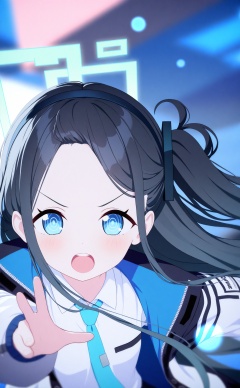 masterpiece,absurdres,best quality,loli,petite,high quality,chromatic_aberration,//,1girl,aris (blue archive),solo,ringed eyes,blue eyes,blue necktie,shirt,open mouth,necktie,black hair,long hair,white shirt,collared shirt,jacket,looking at viewer,halo,upper teeth only,forehead,teeth,v-shaped eyebrows,floating hair,very long hair,black hairband,hairband,long sleeves,open clothes,open jacket,outstretched arm,@_@,absurdly long hair,blue theme,blurry,portrait,//,Depth of field,(colorful),hdr,Tyndall effect,depth of field,Tyndall Effect,blurry,blurry_background,depth_of_field,bokeh,glowing,//,<lora:MMDguangwuran6——【noob】hans:0.9>,