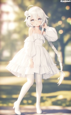 masterpiece,absurdres,best quality,loli,petite,high quality,chromatic_aberration,//,1girl,solo,long hair,high heels,white theme,flower,hair flower,white rose,white flower,full body,hair ornament,dress,white hair,white dress,pantyhose,looking at viewer,white background,rose,simple background,grey eyes,white pantyhose,braid,white footwear,parted lips,very long hair,shoulder cutout,long sleeves,frills,ribbon,skirt,hair ribbon,white ribbon,single braid,white skirt,standing,hair between eyes,hand up,hand in own hair,shirt,clothing cutout,puffy sleeves,twitter username,white eyes,frilled dress,floating hair,ahoge,standing on one leg,choker,open mouth,detached sleeves,puffy long sleeves,bare shoulders,white shirt,white choker,//,Depth of field,(colorful),hdr,Tyndall effect,depth of field,Tyndall Effect,blurry,blurry_background,depth_of_field,bokeh,glowing,//,<lora:MMDguangwuran6——【noob】hans:0.9>,