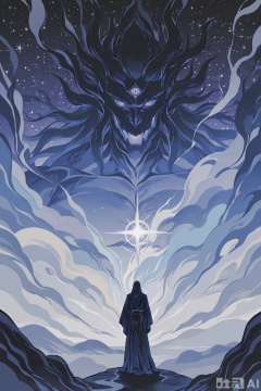 The overall atmosphere of the artwork is one of awe and mystery, inviting the viewer to ponder the story behind this otherworldly encounter. The use of light and shadow, along with the fluidity of the serpent's movement, imbues the scene with a sense of motion and energy.
