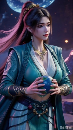 (masterpiece, best quality:1.2),Realistic details, ultra-clear, wallpaper, 8k, masterpiece, masterpiece, best quality, high quality, flowing long hair, exquisite hair accessories, headdresses, cyberpunk electronic luminous clothing, full body multi-luminous line light strips, cyberpunk luminous lines colorful. The sacred light, the cosmic space background, the planets of different colors around, the nebula flows, the stars twinkle, the golden willow branches stretch, holding an earth with both hands, the details of the earth's surface, the texture of mountains, rivers and oceans, the surrounding planets, planets of all sizes, traces of planets orbits, dreamy light and shadow effects.,(huge breasts:2.99),(full breasts:2.99),,Xbigbreasts,Xxinghuanwang001,XmupeulingHY3,XlujiajiaYH,XmupeulingHY2,XQueenMedusa
