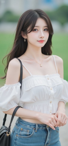 1girl,solo,long hair,handbag,bag,jewelry,denim,brown hair,looking at viewer,blurry background,blurry,necklace,own hands together,earrings,outdoors,jeans,breasts,lips,shoulder bag,off shoulder,cowboy shot,black hair,, Negative prompt: ng_deepnegative_v1_75t,(badhandv4:1.2),EasyNegative,(worst quality:2),,nsfw, Steps: 20, Sampler: Euler, CFG scale: 3.5, Seed: 3542862885, Size: 720x1536, Model hash: 49fe535dad, Model: 星梦·电影&电视剧_Film_fp8.safetensors, Denoising strength: 0, RNG: CPU, Lora 1: F.1极致摄影-温柔之夜, Lora Hash 1: 8f769d7d13, Lora Weight 1: 0.8, vae_name: automatic