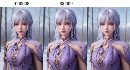 (score_9),<lora:圣彩儿-apony-000008:0.83>,caier,solo,1girl,long hair,jewelry,hair ornament,earrings,hair flower,white hair,lips,chinese clothes,shoulder armor,belt,forearm sleeve,long dress,thighhighs,<lora:Expressive_H-000001:0.8>,(soft purple eyes),purple eyes,light blush,looking at viewer,front view,(mature_female),collarbone,(glamor:1.2),curvy,pointy breasts,puffy breasts,<lora:e肤色滑块:0.35>,((white_skin)),<lora:RealisticSkinv1_ponyv6_loraplus:0.25>,real skin,realistic,simple background,in snow,Tyndall effect,available light,depth of field,tree,snowflakes,ultra-detailed skin texture,detailed textures,4K ultra HD,high detail,