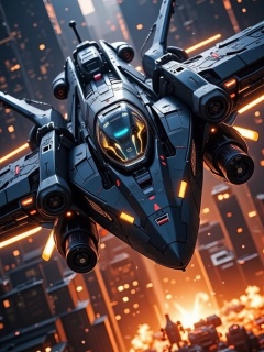 mecha,Jet Fighter,explode,Transformers Titan,silhouette art,chiascuro,a_skynet_cyberdyne_systems_craft,this image features a futuristic,highly advanced attack fighter fighting over the night cyberpunk city,bullet explosion,explosion background,the fuselage is **** of dark *** copper alloy,Equipped with rivets,bolts,luminous LEDs and diodes,large artillery is installed on the outside of the fighter,the cockpit shows luminous LED lights,and there is a large air ******,motion blur on the propeller blades (black and yellow highlights),two crew members can be seen through the cockpit window,high detail surreal,full body,high detail,movie lighting,amazing beauty,complexity,sharp focus,f/1.8,85mm,(centered image synthesis),(professional color grading),((bright and soft diffuse light)),HDR 4K,8K,