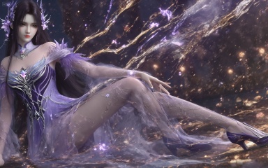 A digital artwork of a beautiful,ethereal woman with long,dark hair and pale skin,wearing a flowing,purple,semi-transparent dress adorned with intricate floral patterns and glowing purple accents. a woman's legs in elegant,sheer purple stockings adorned with intricate floral patterns and silver accents,paired with matching high-heeled shoes.,, She sits on the ground with her legs extended,one leg bent at the knee and the other stretched out,showcasing the length and shape of her legs. Her feet are pointed,enhancing the elegance of her pose. Her arms are gracefully positioned,one resting on her bent knee and the other extended along her body,adding to the fluidity and grace of her posture. The overall pose is one of relaxed confidence and sensuality.,, best quality,astonishing quality,ultimate aesthetics,absurd,best quality,ultimate aesthetics,masterpiece,emotional masterpiece,extraordinary above all,mastery of details,, Negative prompt: ng_deepnegative_v1_75t,(badhandv4:1.2),EasyNegative,(worst quality:2),,nsfw, Steps: 30, Sampler: DPM++ 2M, CFG scale: 3.5, Seed: 3403468201, Size: 1536x960, Model hash: 062dad72b2, Model: 麦橘超然majicFlus_v1.safetensors, Denoising strength: 0, RNG: CPU, Lora 1: 《金芒逸凤》唯美古风主题风格化lora|摄影|海报设计, Lora Hash 1: 779d600c15, Lora Weight 1: 0.7, Lora 2: MAJICFLUS_麦橘光影约拍, Lora Hash 2: 158a204aee, Lora Weight 2: 0.7, Lora 3: 极致逼真美感模型, Lora Hash 3: 3ef31b4d84, Lora Weight 3: 1.05, Controlnet 0: "preprocessor: depth_anything, model: InstantX-FLUX.1-dev-Controlnet-Union-Pro-2.0, weight: 0.6, starting/ending: (0.0, 0.6), resize mode: Crop and Resize, pixel_perfect: False, control mode: Balanced, preprocessor params: (512, None, None)", vae_name: automatic