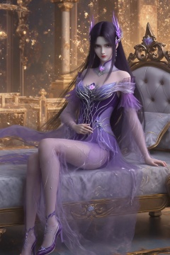 A digital artwork of a beautiful,ethereal woman with long,dark hair and pale skin,wearing a flowing,purple,semi-transparent dress adorned with intricate floral patterns and glowing purple accents. a woman's legs in elegant,sheer purple stockings adorned with intricate floral patterns and silver accents,paired with matching high-heeled shoes.,, She reclines on a luxurious bed,positioned centrally in the frame. Her body is angled slightly to the side,with her right arm bent and resting on the bed,while her left arm is gently placed on her waist. Her legs are slightly bent,with one leg resting over the other,exuding an air of relaxed elegance. The scene is enhanced by warm,golden lighting that casts soft shadows across her figure and the ornate bed,highlighting the intricate details of her attire and the luxurious surroundings.,, best quality,astonishing quality,ultimate aesthetics,absurd,best quality,ultimate aesthetics,masterpiece,emotional masterpiece,extraordinary above all,mastery of details,, Negative prompt: ng_deepnegative_v1_75t,(badhandv4:1.2),EasyNegative,(worst quality:2),,nsfw, Steps: 30, Sampler: DPM++ 2M, CFG scale: 3.5, Seed: 889990887, Size: 1024x1536, Model hash: 062dad72b2, Model: 麦橘超然majicFlus_v1.safetensors, Denoising strength: 0, RNG: CPU, Lora 1: 《金芒逸凤》唯美古风主题风格化lora|摄影|海报设计, Lora Hash 1: 779d600c15, Lora Weight 1: 0.7, Lora 2: 极致逼真美感模型, Lora Hash 2: 3ef31b4d84, Lora Weight 2: 1.05, vae_name: automatic