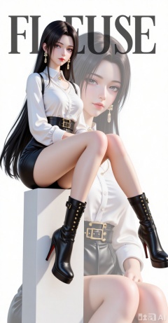 shirt,shorts,legs,long legs,boots,high_heel_boots,full body,bag,sitting,