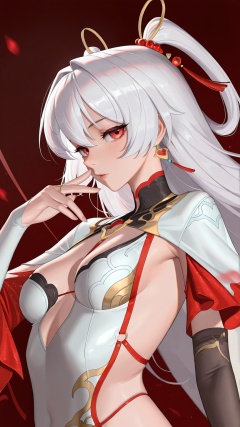 masterpiece,best quality,amazing quality,<lora:dayuexia(qipao)-000020:0.8>,dayuexia\(qipao\),<lora:20250808-1754650692631:0.8>,zhigan3d,1girl,white hair,red eyes,solo,small_breasts,looking at viewer,