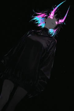 masterpiece,best quality,amazing quality,very aesthetic,absurdres,newest,in the style of fashion photography,light particles,cinematic lighting,Visual impact,sharp focus,Emotionalization,depth of field,dynamic pose,dutch angle,extreme aesthetic,scenery,(choco (chocolate shop):0.5),(Yomu:0.5),(chiaroscuro:0.5),(WANKE:0.5),(yunsang:0.5),(ningen mame:0.5),(ke-ta:0.5),(yoneyama mai:0.5),limited palette,black background,colorful,vibrant,glowing outline,neon,1girl,