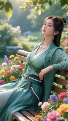 (masterpiece, best quality:1.2),A beauty ,(dress). Leaning on a garden bench filled with macaron - colored flowers,.Sunlight filters through the leaves onto her face, creating a lazy and gentle atmosphere, and her skirt sways softly in the breeze. 8K resolution, detailed texture of knitted fabric, lustrous pearl texture, vivid flower colors, soft natural light, Instagram - style filter texture.,(huge breasts:2.99),(full breasts:2.99),XsongyuQwen,XyinyueQwen,XlujiajiaQw,XsongyuQwen,XmupeulingQwen,XiPhone17Pro