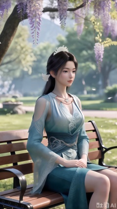 (masterpiece,best quality:1.23),portrait of a stewardess, beautiful face, perfect hourglass figure, China Southern Airlines uniform, sitting on a park bench, wisteria vines, blooming flowers, soft focus, out-of-focus background,(huge breasts, full breasts:2.99),XlujiajiaQw,XmupeulingQwen,XsongyuQwen,XyinyueQwen,XsongyuQwen,XmupeulingHY3